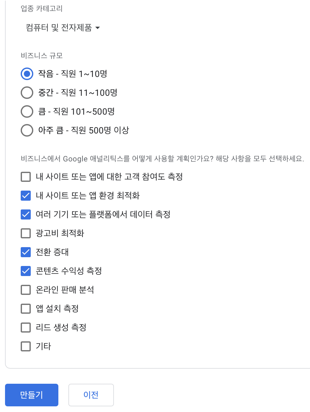 추천 설정을 위한 기초 정보 입력부분이다. 적당히 고르고 만들기를 눌러준다.